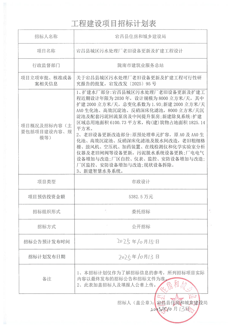 宕昌縣城區(qū)污水處理廠老舊設(shè)備更新及擴建工程設(shè)計