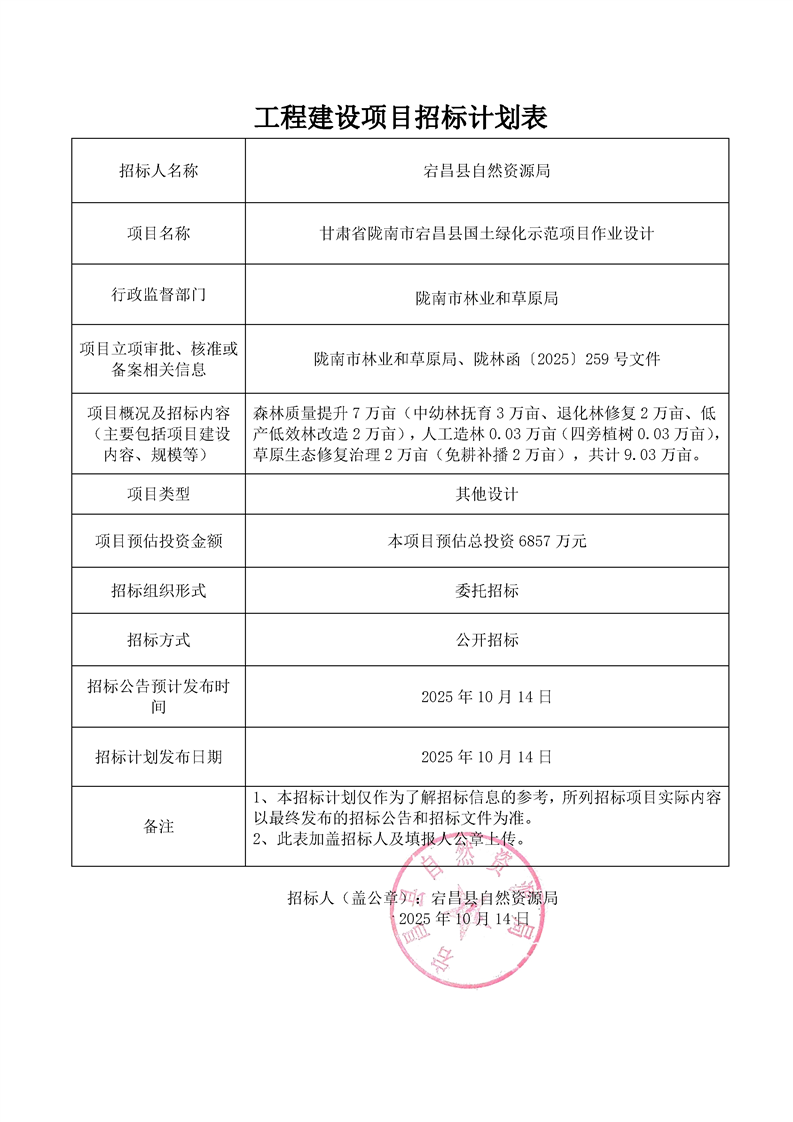 工程建設(shè)項目招標(biāo)計劃表甘肅省隴南市宕昌縣國土綠化示范項目作業(yè)設(shè)計.pdf