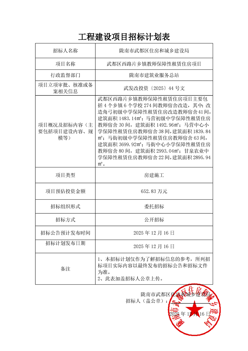 武都區(qū)西路片鄉(xiāng)鎮(zhèn)教師保障性租賃住房項目