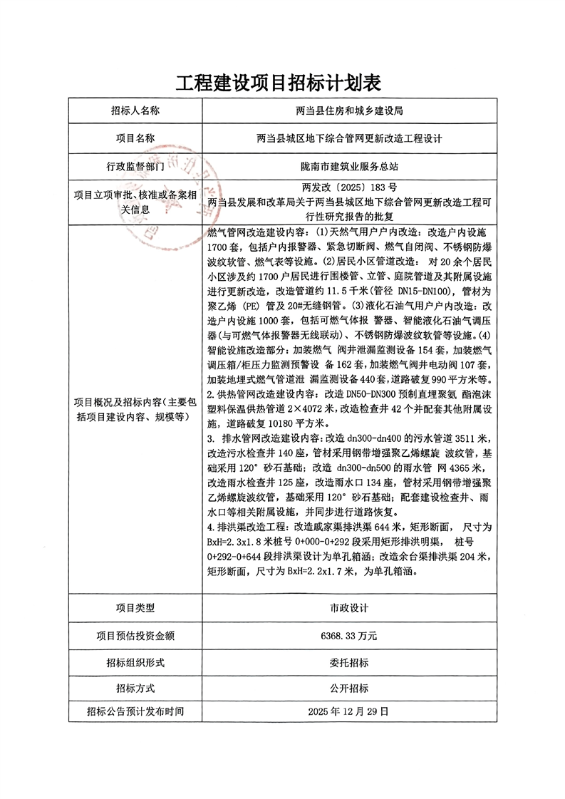 兩當縣城區(qū)地下綜合管網(wǎng)更新改造工程設計