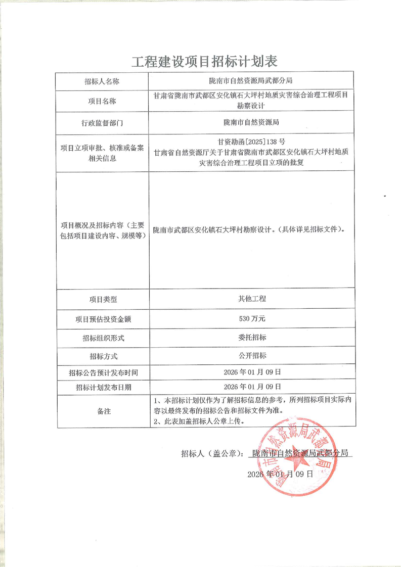 甘肅省隴南市武都區(qū)安化鎮(zhèn)石大坪村地質(zhì)災(zāi)害綜合治理工程項(xiàng)目勘察設(shè)計(jì)