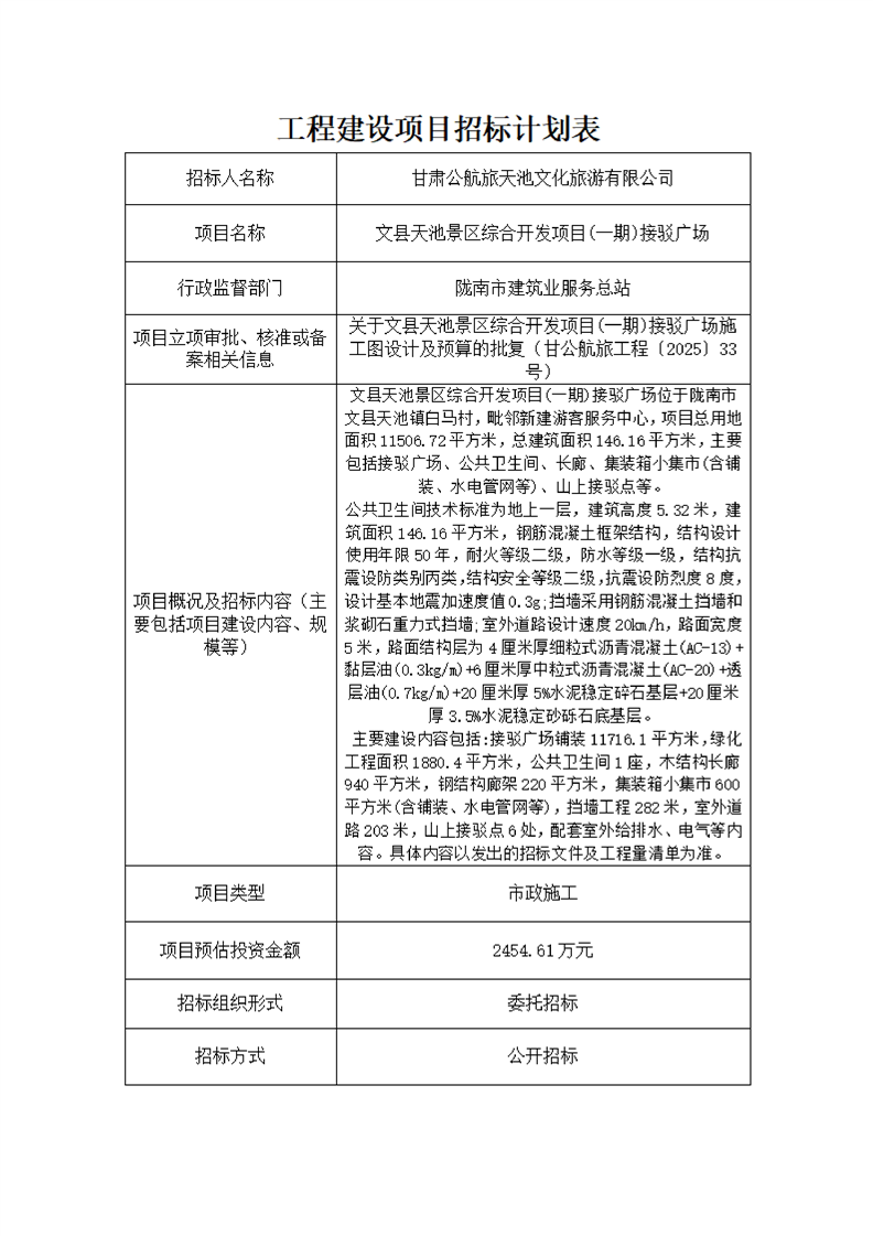 文縣天池景區(qū)綜合開發(fā)項(xiàng)目(一期)接駁廣場