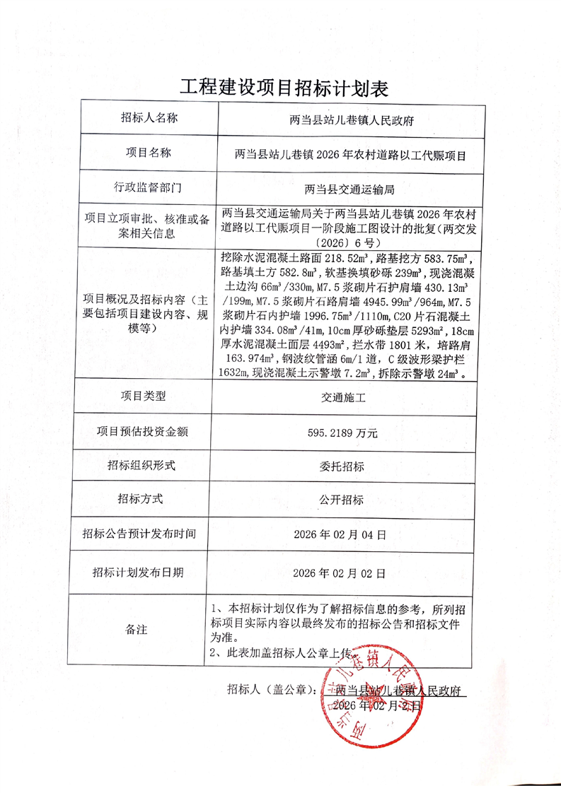 兩當縣站兒巷鎮(zhèn)2026年農村道路以工代賑項目