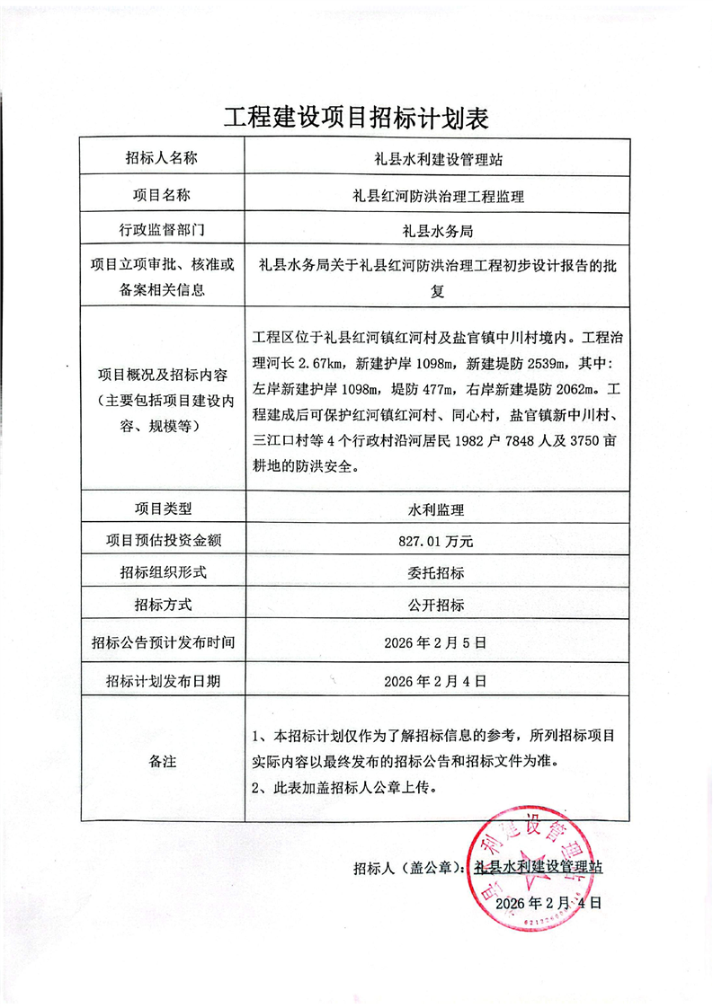招標(biāo)計(jì)劃表--禮縣紅河防洪治理工程監(jiān)理.pdf