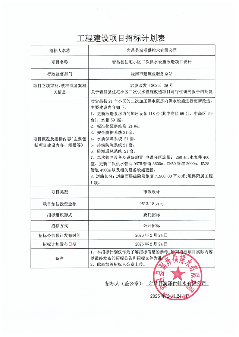 宕昌縣住宅小區(qū)二次供水設施改造項目設計