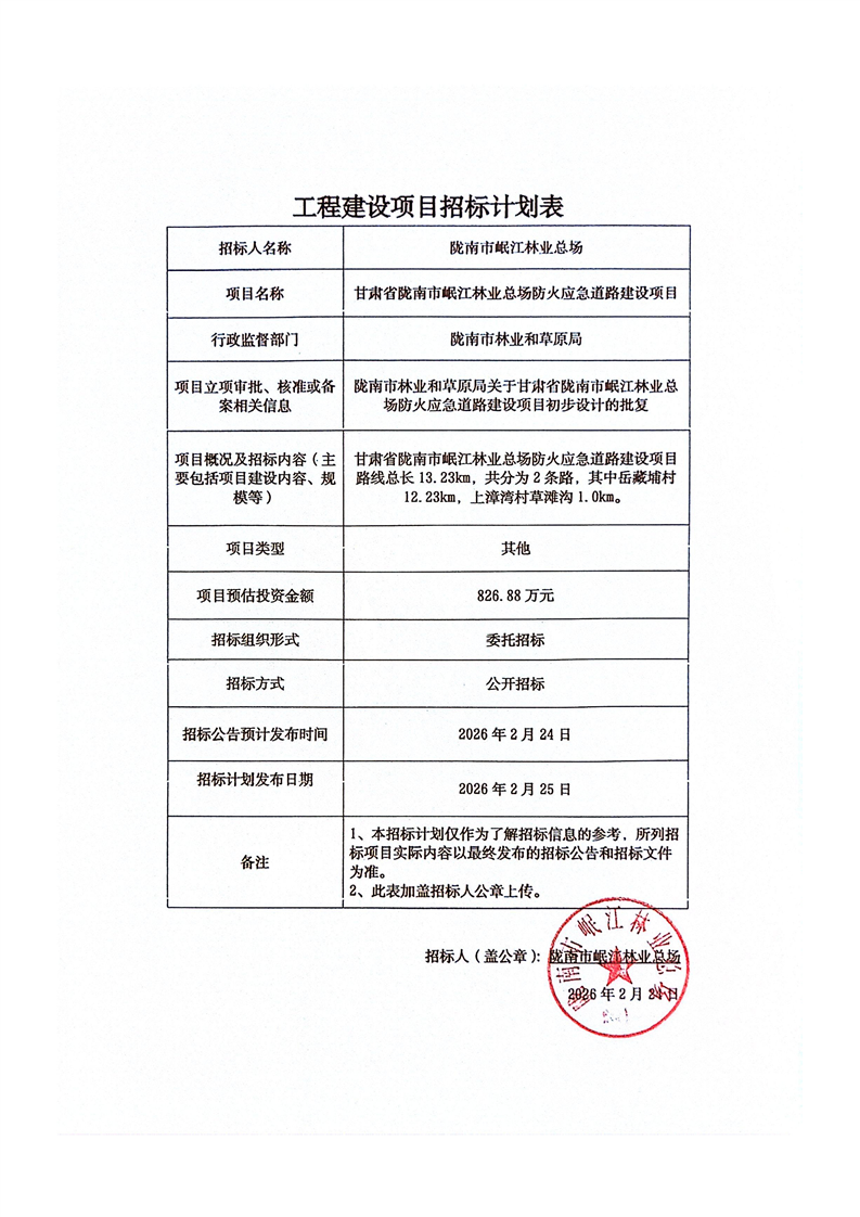 甘肅省隴南市岷江林業(yè)總場防火應(yīng)急道路建設(shè)項(xiàng)目