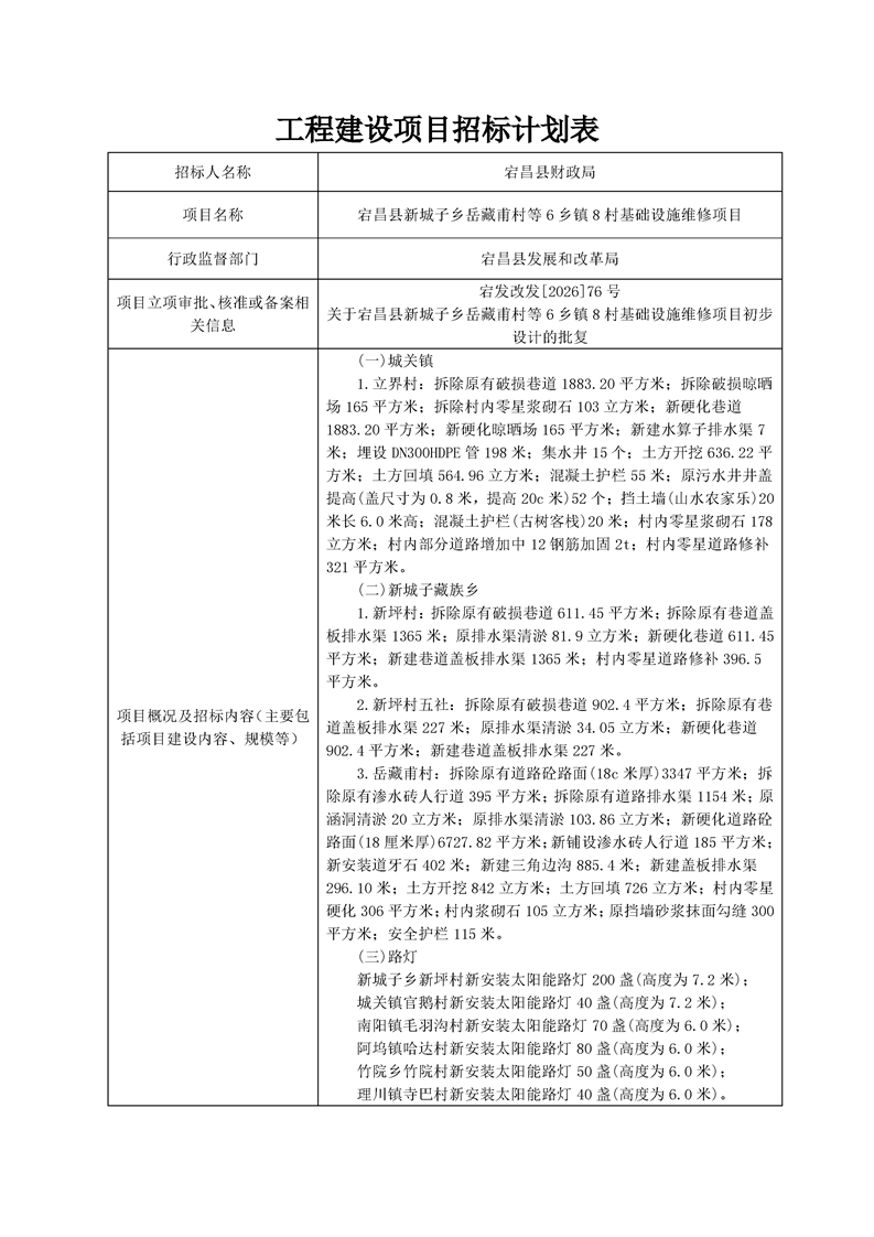 宕昌縣新城子鄉(xiāng)岳藏甫村等6鄉(xiāng)鎮(zhèn)8村基礎(chǔ)設(shè)施維修項目